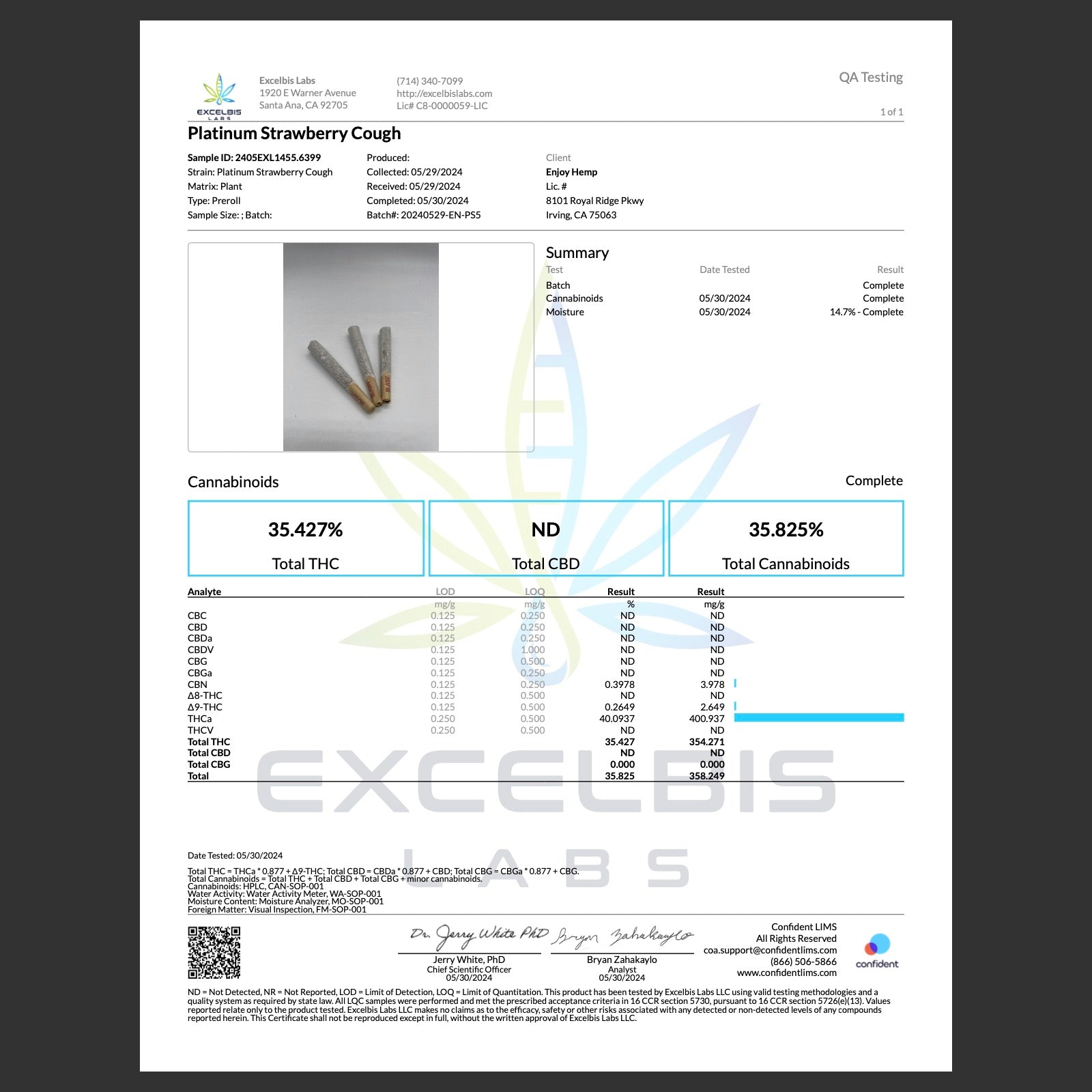 Enjoy Hemp is one of the only providers in the country to use pure THCA in all of its products. Most of the industry uses 95% Delta 8 THC with 1% THCA in their products. Our products contain the highest amount of THCA possible in our products ranging from 28-40% in our flower/prerolls and approximately 60% in our vape products.